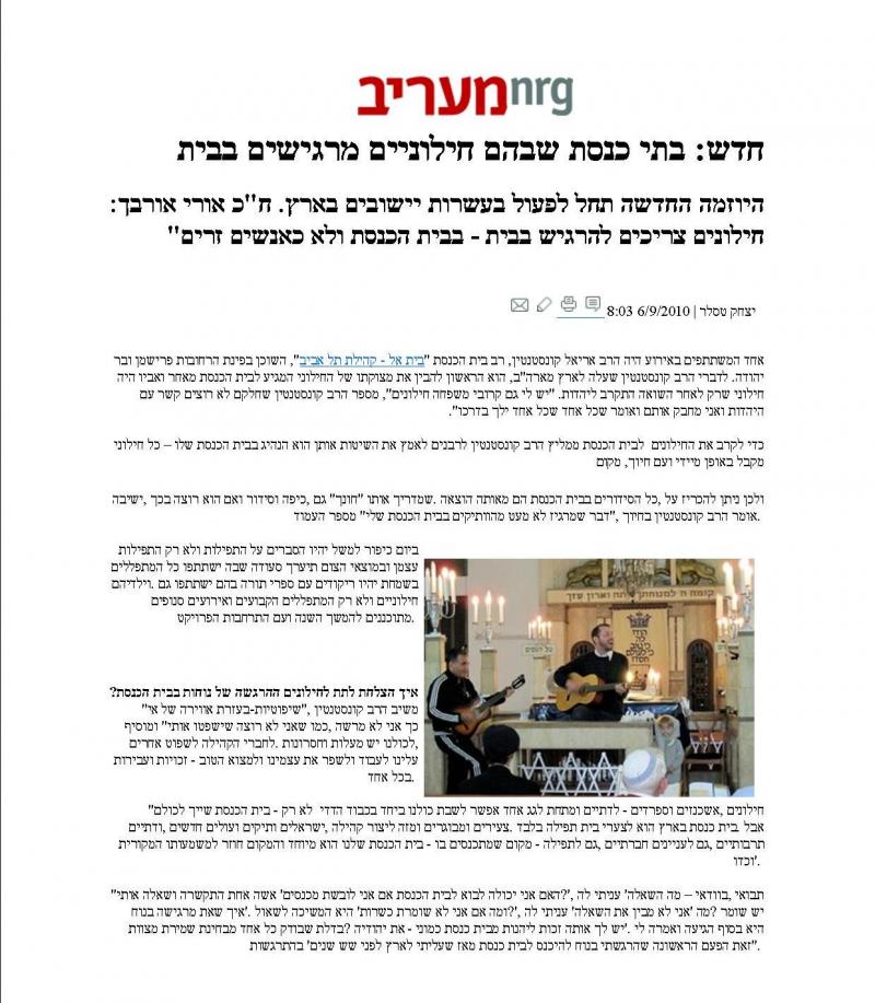 Ma’ariv reports on the The Tel Aviv Synagogue as the model synagogue in Israel to welcome Jews from all backgrounds and levels of observance in a new project called “Targishu Babayit” under the direction of MK Uri Orbach.